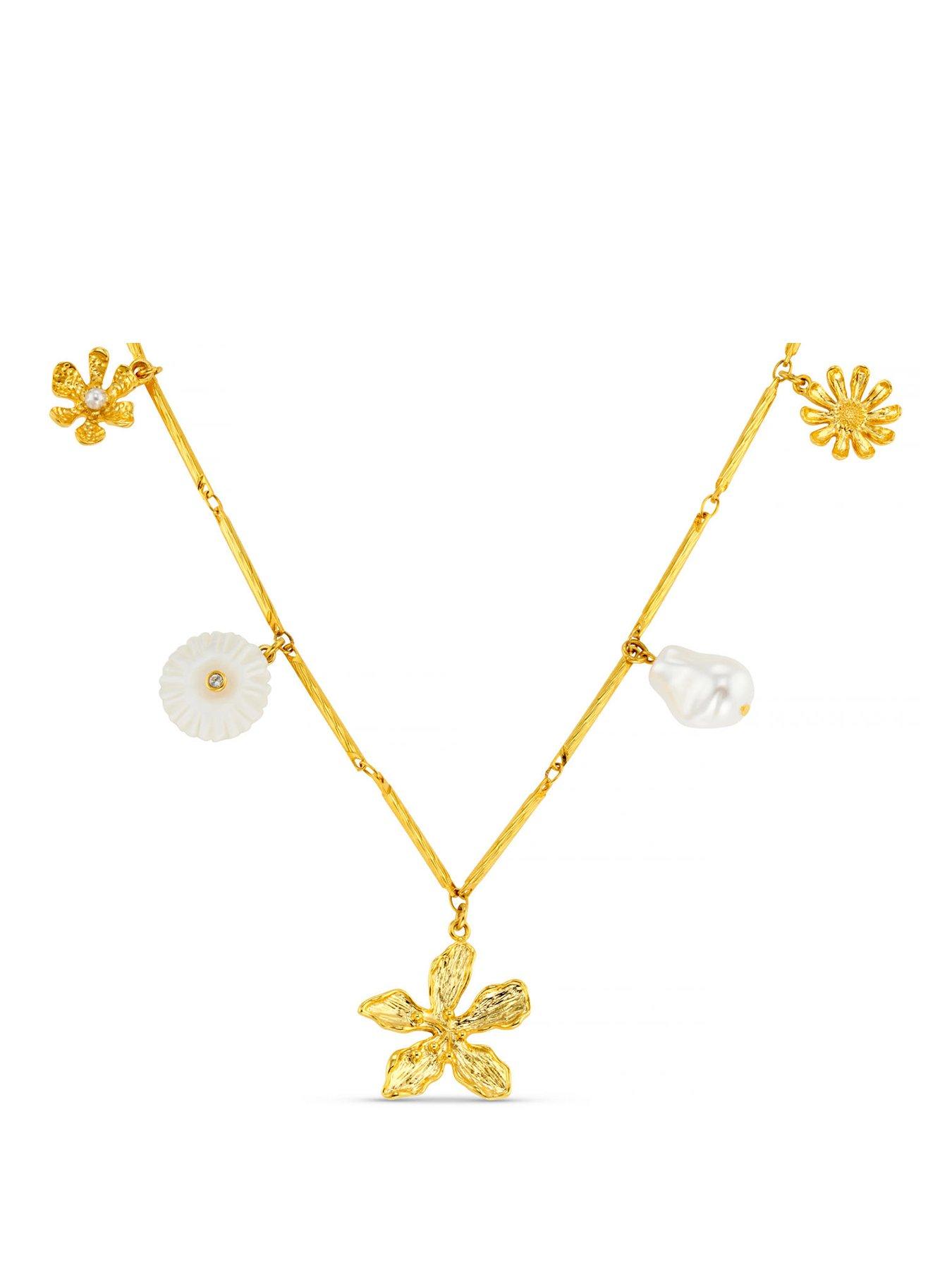 Orelia Statement Flower & Pearl Necklace A Bold Yet Delicate, The Statement Flower & Pearl Charm Necklace Blends Floral Beauty With Timeless Elegance. This Necklace Features A Bar-Link Chain And Eye-Catching Flower Charms Paired With Luminous Pearl Charms. Your Go-To Finishing Touch For Those Warmer Month Special Occasions - An Accessory You??????Ll Reach For Again And Again. Fashion Jewellery Type: Necklaces