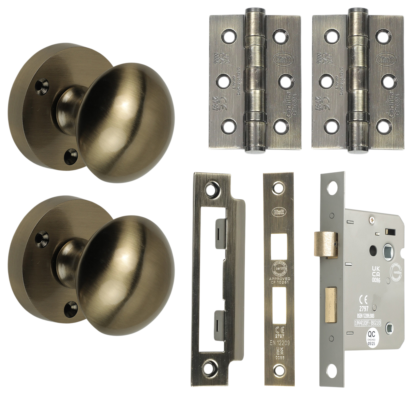 Orion Moritce Knob Antique Brass 76mm Bathroom Door Pack - This door pack offers a contemporary vintage look for internal doors, with a high quality antique brass finish, perfect for a variety of bathroom designs.