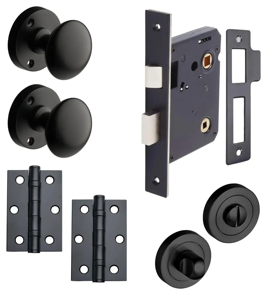 Orion Mortice Door Knob Matt Black 76mm Bathroom Door Pack