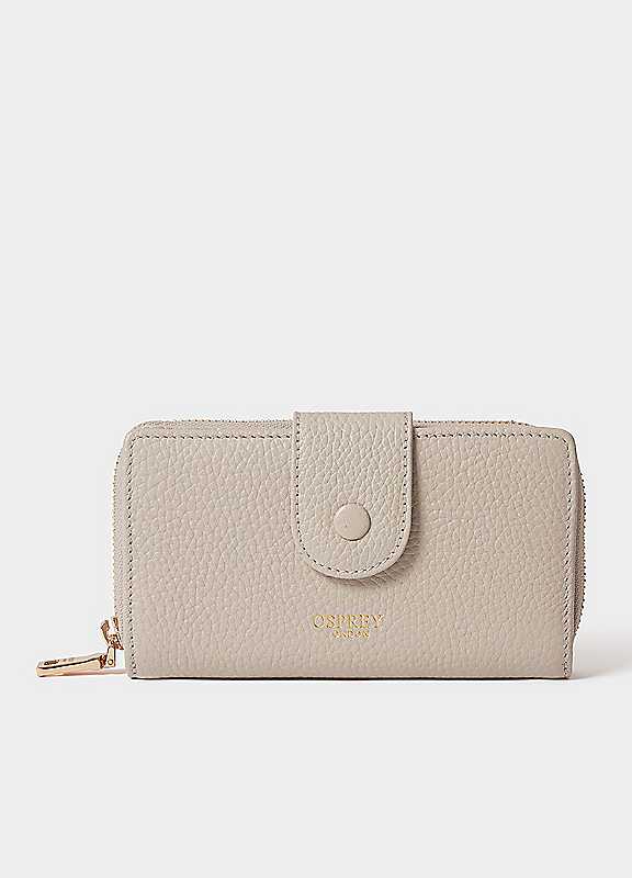 Osprey London The Core Taupe Medium Leather Popper Matinee Purse