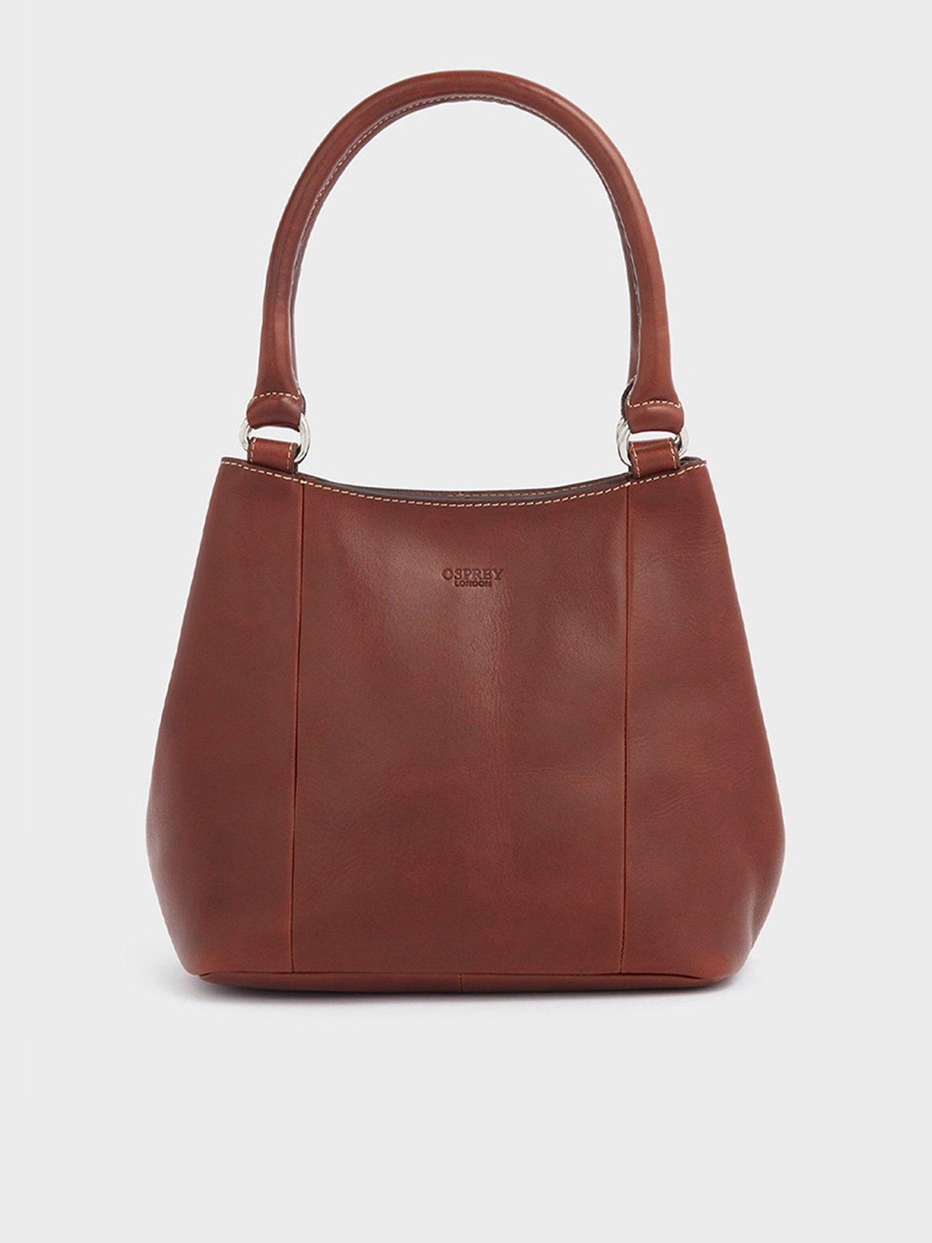 Osprey London The Narissa Small Hobo Size & Fit Height: 24Cm Width: 31Cm Depth: 18Cm Handle Height: 22Cm Details The Narissa Small Hobo By Osprey London Brown Panelled Front Design With Embossed Osprey London Logo Two Rolled Leather Handles Affixed Via Silver Metal D Rings For Hand, Wrist, Or Shoulder Carry Gusseted Sides For Added Capacity, And A Flat Base For Stability Tri Part Interior Secured By Two Magnetic Clasps For Outer Compartments: Central Compartment With A Silver Metal Zip Lined In English Rose Jacquard Fabric; A5 Compatible Outer Compartments Osprey London Winged Crest Logo Framed In Leather Beneath The Zipped Pocket Material & Care Material Content: Leather Washing Instructions: Wipe Clean