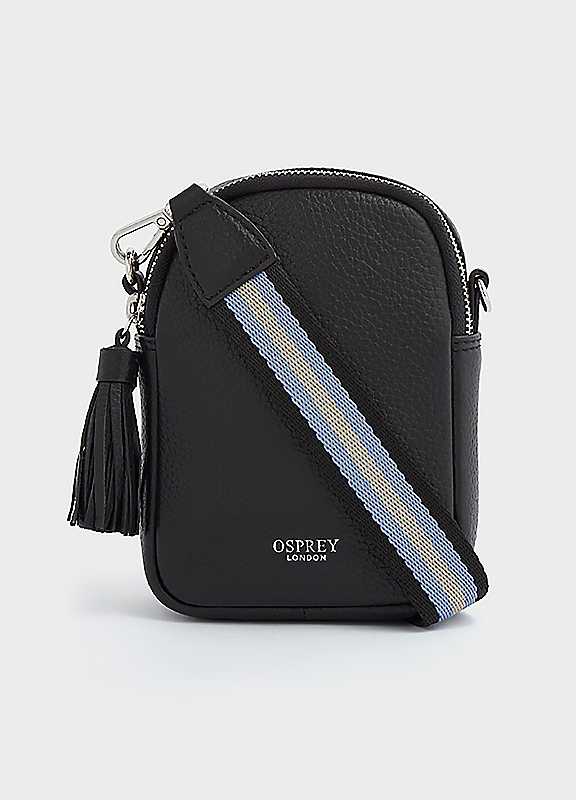 Osprey London The Stella Black Leather Phone Bag - Size ONE SIZE