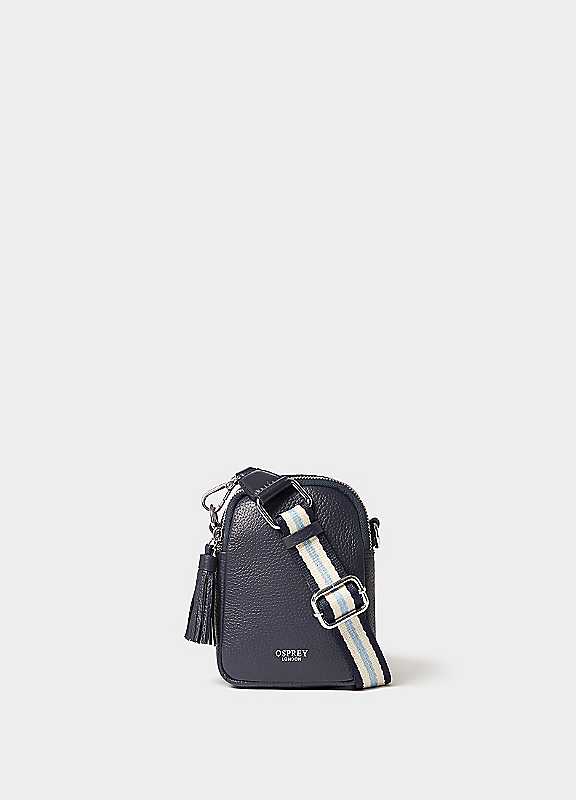 Osprey London The Stella Navy Leather Phone Bag