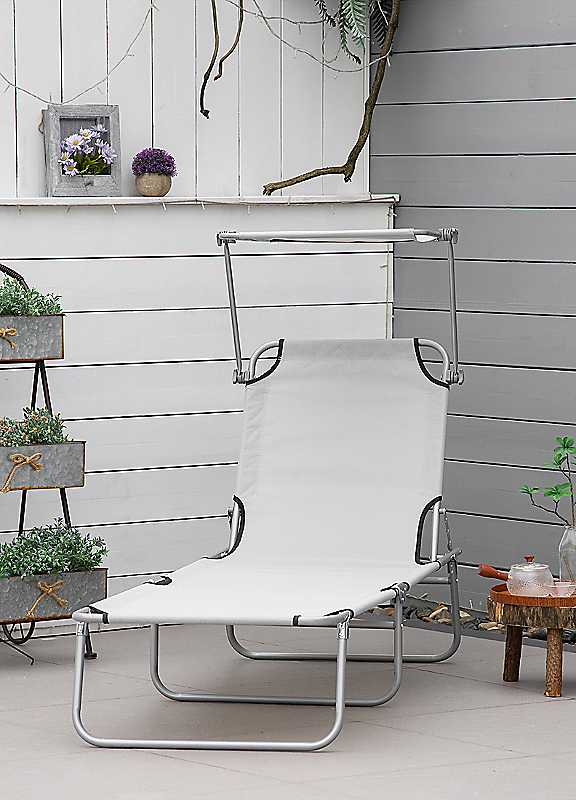Outsunny Foldable Sun Lounger with Sunshade - Light Grey