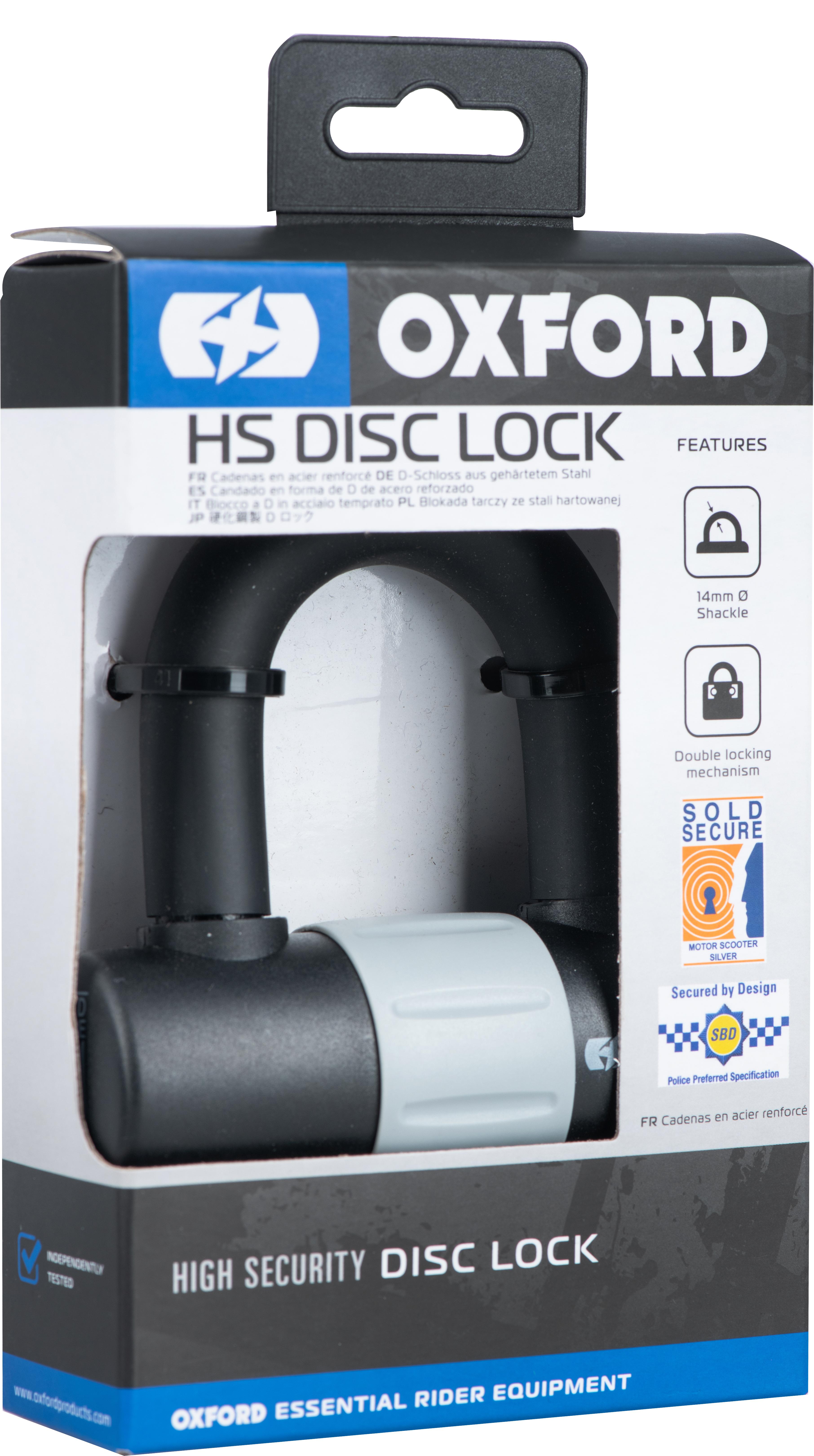 Sold Secured bicycle gold motor scooters silver approved Accredited to Secured by Design (SBD) Key Features: Fits the majority of brake discs Tough hardened steel construction Double locking mechanism Rotating keyway cover included Anti-pick Oxford key design Replacement key service available