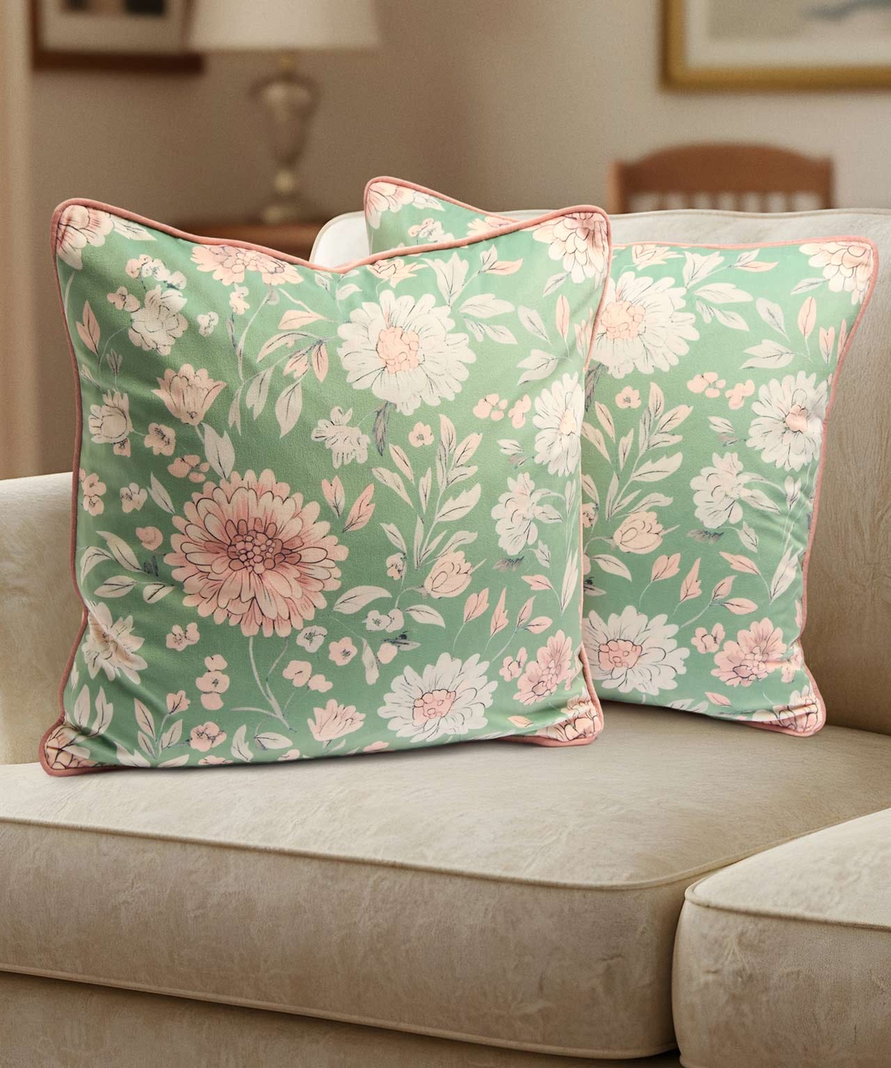 Pack of 2 Piped Floral Cushion covers, Green Floral, One Size