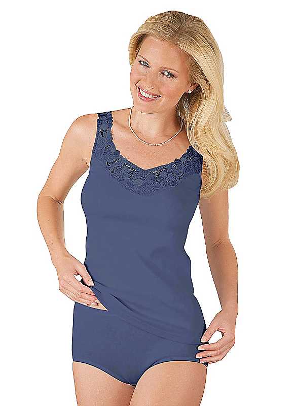 A comfortable, double pack vest set with an embroidered motif stretching up into the wide straps. Made from a silky smooth fabric. Pack of 2 1 x White & 1 x Colour Washable 100% Cotton
