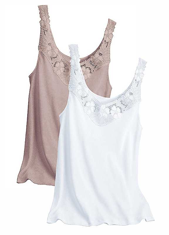A comfortable, double pack vest set with an embroidered motif stretching up into the wide straps. Made from a silky smooth fabric. Pack of 2 1 x White & 1 x Colour Washable 100% Cotton