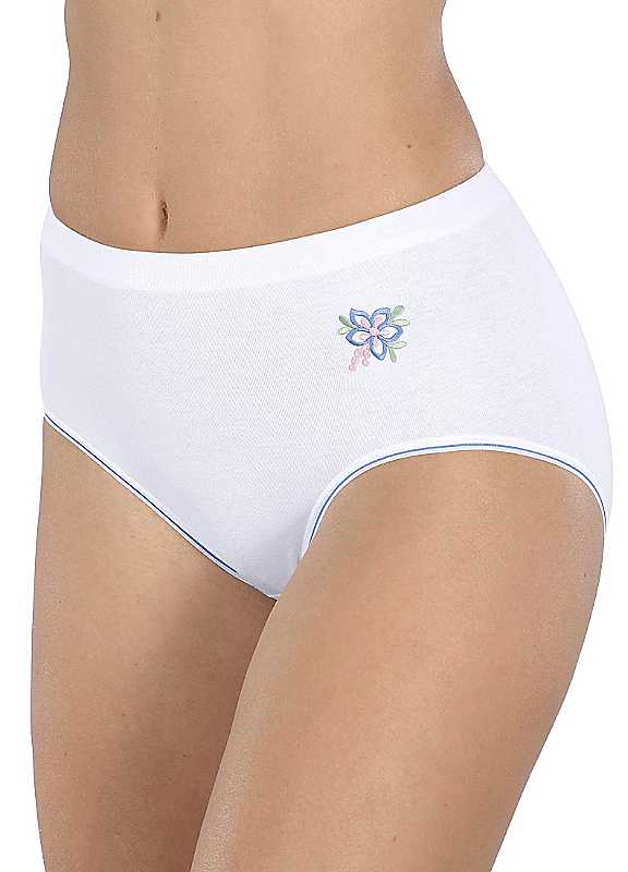A high quality, pack of three, fine rib, full briefs with embroidered motif. Pack of 3 Elasticated waistband Washable 100% Cotton