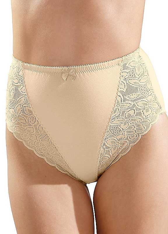 These gently shaping briefs feature a wide, very soft elasticated lace insert at the side. Pack of 3 Double gusset Washable max. 60°C 95% Cotton, 5% Elastane