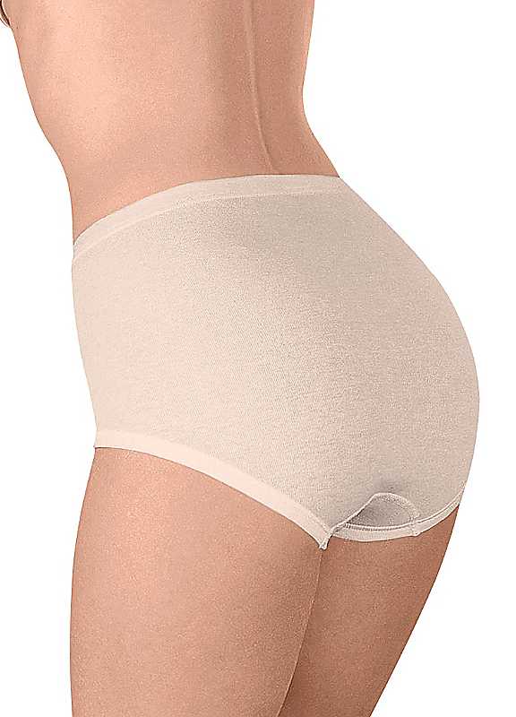 A pack of five waist high briefs with the elastic sewn into the waistband. Kind to skin, natural fabric Combed, fine ribbed cotton Washable max. 95°C 100% Cotton