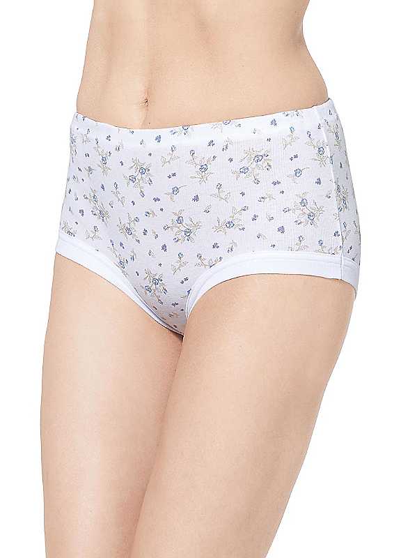 Delicate floral design: Pack of 5 waist-high briefs. Replaceable elastic and buttonhole at the waist. Pack of 5 Ribbed leg hems Fine rib With replaceable elastic Buttonhole at waist Washable 100% Cotton