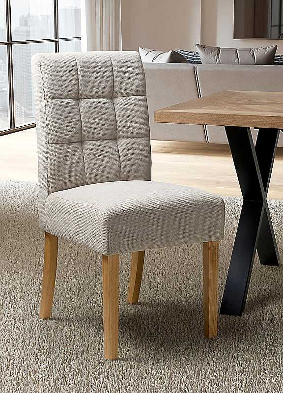 A modern deep seated dining chair with stitched waffle detailing on the back, upholstered in attractive natural flax effect fabric and features rubberwood legs. The generous padded seat is sprung and belted for extra strength and support. This modern design would complement a variety of dining table styles. Enhance your dining space with these stylish and functional chairs which combine aesthetics with practicality.Overall Assembled Dimensions: H92 x W45 x D58cmWeight of Product: 9.2kgWeight Capacity: 120kgSeat dimensions: 49 x 45 x 40cmBack Dimensions: 37cmFloor to seat: 47cmSpecifications Material: Rubberwood, PolyesterSuggested Number of People for Assembly: 1/2Tool Kit Included: YesSelf-Assembly Manufacturer's 1 year guarantee Product Care: Wipe clean only, avoid household cleaners/abrasivesPlease remember to measure your available space before ordering. If using on an un-carpeted floor we recommend rubber or felt protection pads be used under the legs to avoid damage to your floors.