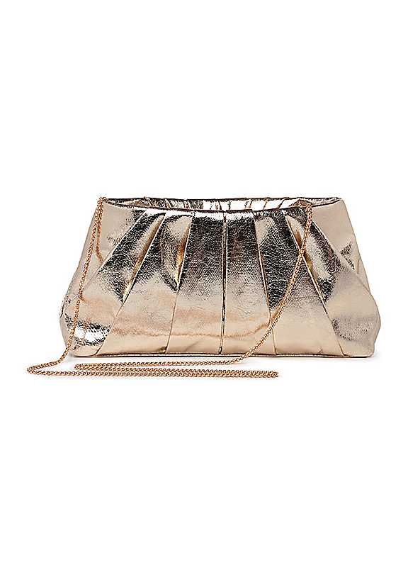 Complete your look with the Desert clutch. This pleated soft clutch bag has been designed to hold all your essentials while adding a glamorous finish to your look, effortlessly taking you from day to night.SyntheticSize approx. 16H x 32W cm | metallic clutch purse, clutch purse, evening clutch bag, gold clutch purse, glamour purse, detachable purse strap