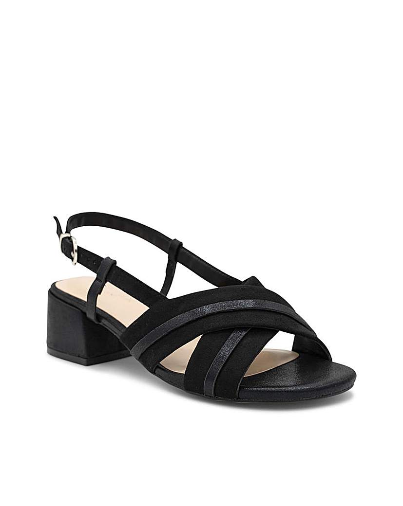 Paradox London Nadia Wide E Fit Block Heel Sandal Upper: Microsuede Lining: Synthetic Outsole: Synthetic Heel Height: 4.5cm/1.8 The Paradox London Wide Fit Nancy sandals sit on a comfortable low block heel. The cross strap front has a pretty shimmer detailing that adds some glamour to this stylish sling back. "