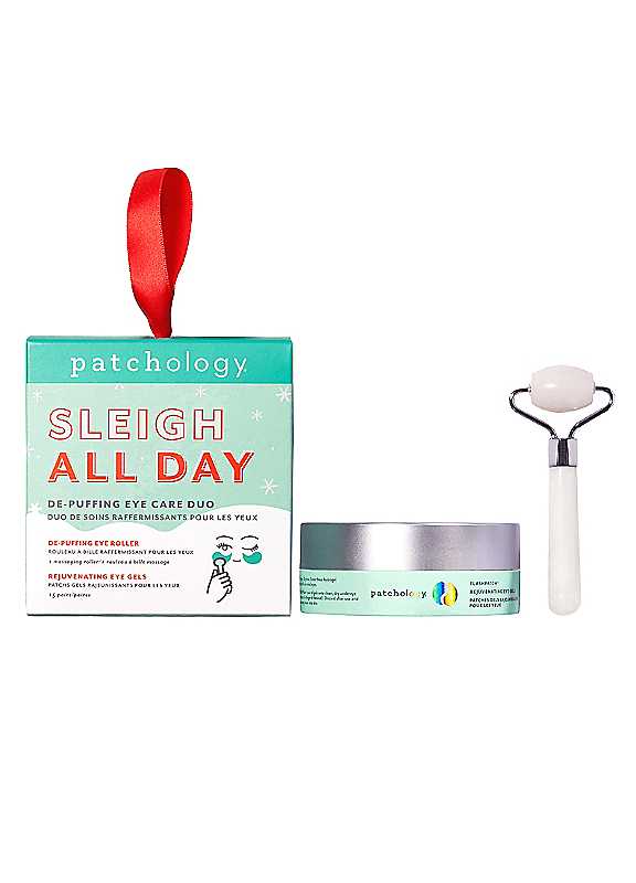 Patchology Sleigh All Day De-Puffing Eye Care Duo: Ultimate AM Pick-Me-Up Too much holiday cheer? This fast fix for tired eyes helps to hydrate, depuff, and brighten in just 5 minutes, allowing you to face the day looking and feeling-refreshed and revitalized. Best-selling Rejuvenating Eye Gels feature a powerful blend of Caffeine, Hyaluronic Acid, Peptides, and Hyaluronic Acid to tackle dehydration, dark circles, puffiness, and fine lines. Use the custom eye roller to enhance the self-care experience and increase circulation around the eyes for even more effective results. Pro-tip: Keep the eye gels chilling in the fridge to achieve the ultimate de-puffing power. Brand: Patchology