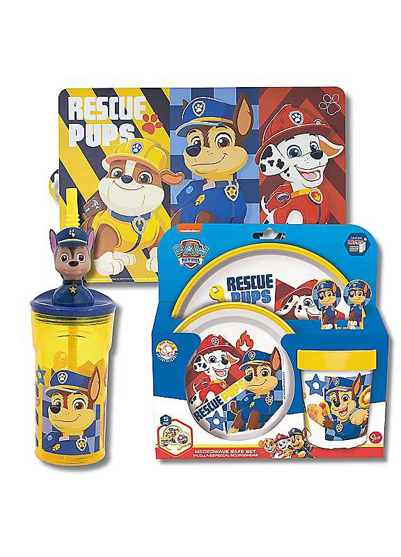 Make breakfast an exciting start to the day with this adorable Paw Patrol Breakfast Set! Featuring a 7-Piece Dinner Set, a Placemat, and a 360 ML 3D Tumbler, it's the perfect way to kick off your child's morning. The bright colours and playful Paw Patrol design will bring joy to every meal, making breakfast something your little one will eagerly look forward to.Crafted from durable plastic, this set is built to last and resistant to drops, so you won't need to worry about breakage like with ceramic tableware. The Paw Patrol 3D Tumbler includes an integrated straw and a fun Chase 3D lid, making it easy for your child to carry their favourite drink on the go-perfect for any Paw Patrol fan!Encourage healthy eating and hydration while making mealtime a fun and enjoyable experience for your little one!Wash Before First UseHand Wash OnlyDinner set dimensions approx. 25 x 25 x 8.5 cm3D Tumbler dimensions approx. 23 x 7.5 x 7.5 cmPlace mat dimensions approx. 43 x 28.1 x 0.1 cm