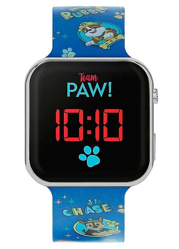 Paw Patrol watch with Paw patrol design dial, plastic casing, red digital display and fun printed strap with traditional buckle fastening. Packaged in official branded packaging and comes with one year guarantee. Brand: PAW Patrol Easy to read dial 12 month manufacturer guarantee
