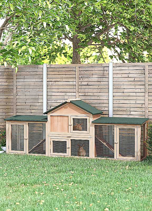 Deluxe rabbit cage: featuring upper living space and running area in the lower level, provide lots of space for your pet to rest, play and exercise. Ideal for 2-4 rabbits, tortoise, bunnies, guinea pigs, ferrets, and other similar sized animals.Sturdy and weather resistant: constructed of natural fir wood frame, make the rabbit house stable and durable. Tilt asphalt roof included to against the weather elements.Comfortable habitat: constructed with durable and sturdy wire to keep rabbits in and predators out as well as ensure good air circulation, providing your pet an affordable and comfortable habitat.Considerate design: there is a ramp connecting with living room and outdoor guinea pig run for easy access. Lockable doors ensure your pet's safety. A mesh window included allow you to observe your pet more easily.Easy to clean: equips with a removable pull-out tray, this duck house is easy to clean.Assembly requiredDimensions approx. 210L x 45.5W x 84.5H cmRun box dimensions approx. 68L x 37W x 55H cmLiving house dimensions approx. 68L x 37W x 52H cmNote: buyer to determine the amount of pets that will fit in the hutch depending on breed and size.