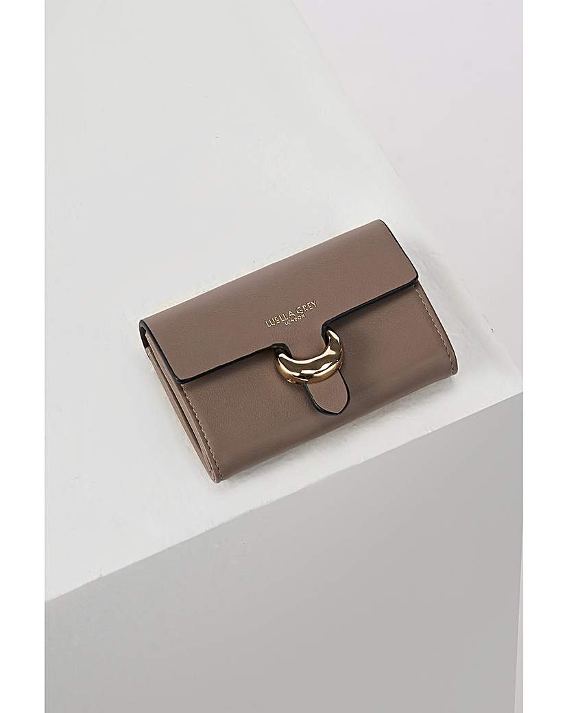 Luella Grey Letitia Peat Medium Purse Meet Letitia the sleek and stylish purse everyone needs! With her practical interior, the Letitia purse is comprised of four card slots - two sections for notes and a zipper compartment for coins. Letitia is available in a smooth, sophisticated finish and is secured with our new Cannon Street molten metal clasp. She features our signature metallic lining and comes complete with a protective dustbag. If you are looking for the perfect bag to match your purse, then bag styles Maggie, Flora and Venetia will complement this purse beautifully. Outer: 100% Polyurethane. Lining: 100% Polyester. H: 10cm, W: 14cm, D: 4cm.