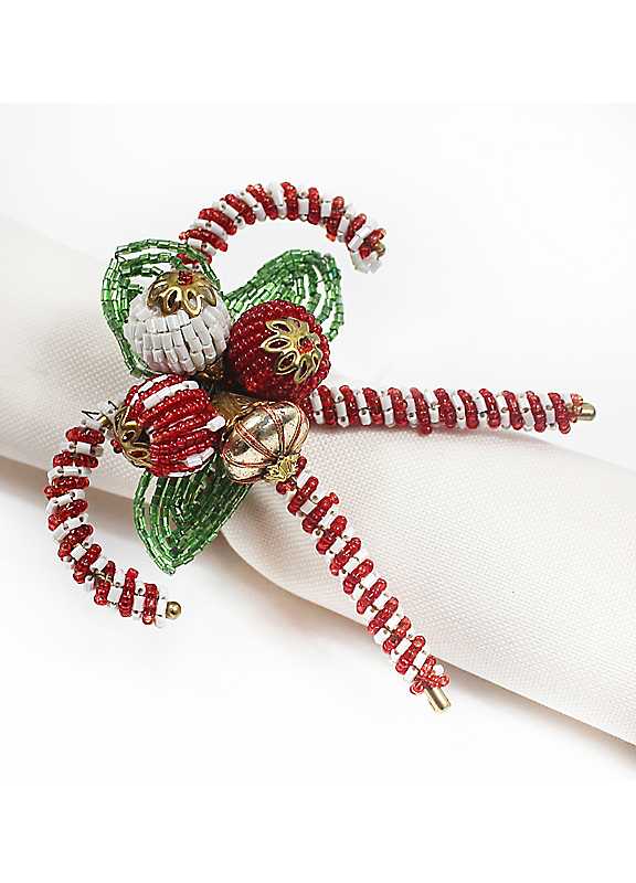 Add a playful touch to your table setting with this charming red and white beaded candy cane napkin ring. These fun and festive accessories bring a whimsical flair to your dining experience.Glass beads & Iron
