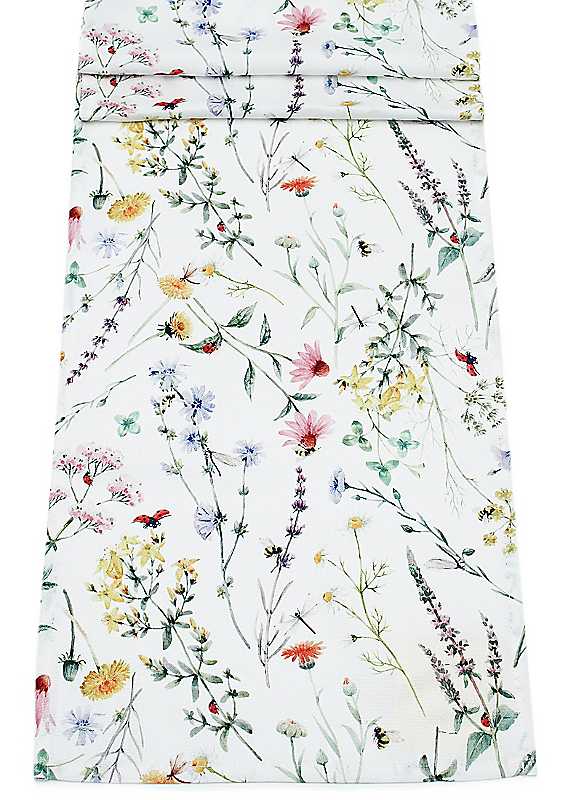 Wild meadow vibes! Brighten up your table with this runner, bursting with colourful flowers and buzzing bees. Perfect for teatime treats or family feasts.Machine washableLine dryIron on low heat100% PolyesterSize approx. 35 x 190 cm