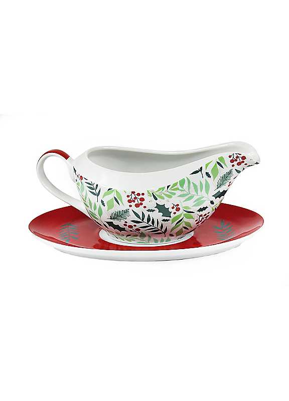Add a touch of elegance to your festive feast with our Gravy Boat and Saucer set, designed to complement your Christmas dining experience. The gravy boat features a beautiful holly and berry design, with a matching saucer to catch any drips. Made from new bone china, this set is both stylish and practical, ensuring your gravies and sauces are served with sophistication.Festive Flair: Holly and berry pattern adds seasonal charm to your Christmas table.New Bone China