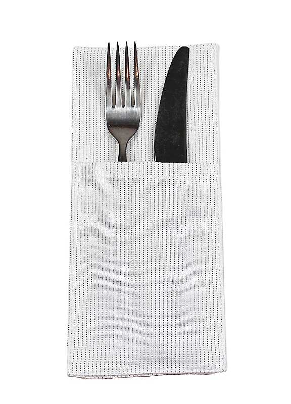 This stylish 100% cotton cutlery holder brings a touch of elegance to your table. Perfect for organising and presenting cutlery with flair, it complements both casual and formal dining settings.Delicate machine wash at 30°CLine dry88% Cotton, 12% LurexSize approx. 10 x 23 cm