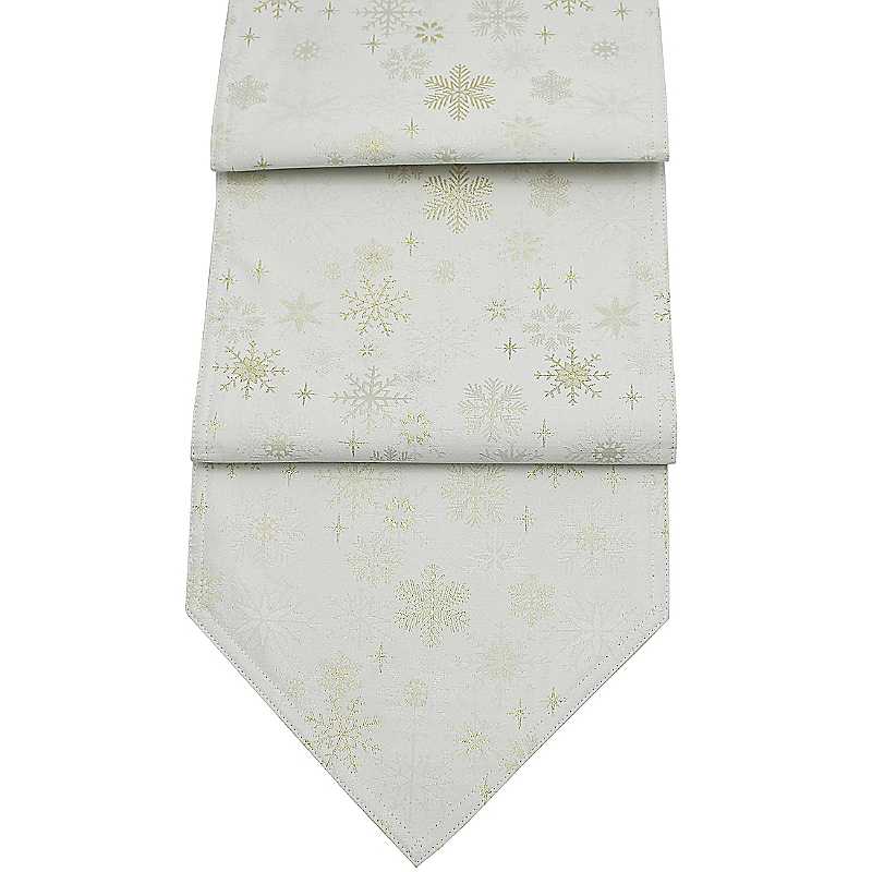 Add a touch of luxe to your table this Christmas with this festive table runner with double layer to give your table extra protection and featuring an all-over snowflake design with metallic thread highlights. Perfect for filling your home with Christmas cheer. Peggy Wilkins Runner Features: Machine washable at 40°C 100% Polyester Size approx. 35 x 190 cm