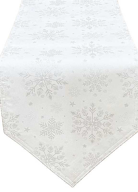 Enhance your dining area with this luxurious Snowflake Jacquard runner. Featuring an intricate jacquard design that beautifully showcases shimmering snowflakes, adding an air of elegance and sophistication to your table setting. Perfect for festive gatherings, special occasions, or everyday use, this table runner provides a stunning backdrop for your dinnerware.Machine washable at 40°CLine dry100% PolyesterSize approx. 35 x 190 cm