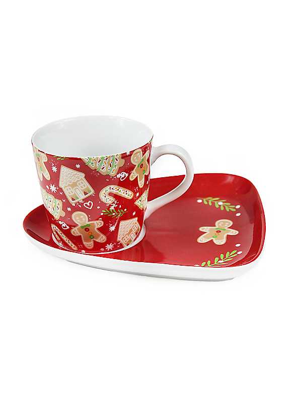 Celebrate the festive season with our elegant Cup and Saucer set, featuring a delightful gingerbread men and sugar cookies design. This set is perfect for enjoying a warm cup of tea or serving guests during your seasonal gatherings. Crafted from durable new bone china, this cup and saucer set is designed to last, ensuring it remains a treasured part of your Christmas tableware collection for years to come.New Bone ChinaDimensions approx. 23 x 15 x 15cm