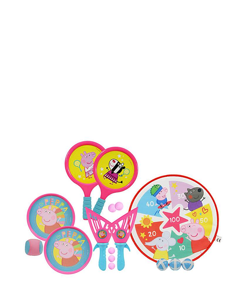 Prepare for the ultimate fun-fifilled summer with our incredible Peppa Pig 4 in 1 Bumper box of garden games. Bursting with 4 exciting games, perfect for the whole family. So, play along with your little ones as they develop their skills and coordination with these fun and interactive ball games. The bumper box includes; a pop & catch, a sticky catch game, a target game and bat and ball set. Featuring fun character graphics of Peppa and her little brother George. Head down to the park and throw, catch and swing into action this summer! Ages from 3 years.