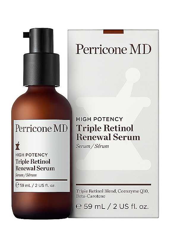 Formulated with our proprietary triple retinol blend, this powerful day and night serum accelerates skin renewal with less sensitivity to deliver the look of collagen-rich, firmer skin. Works together with antioxidant powerhouse coenzyme Q10 and naturally-derived betacarotene (vitamin A) to visibly diminish uneven texture and dullness for a more even, radiant complexion. Works day and night to visibly reduce lines, wrinkles and uneven texture. - Diminishes the look of fine lines and wrinkles - Visibly improves uneven texture and tone - Delivers the look of collagen-rich, firmer skin TRIPLE RETINOL BLEND: Advanced Skin Recovery - A unique blend of encapsulated retinol, retinol ester and phyto-retinol helps deliver the look of collagen-rich skin and visibly reduce fine lines and wrinkles by accelerating surface skin exfoliation and renewal. Naturally-derived, this blend features all highly stable forms of retinol for effective delivery and absorption. COENZYME Q10 (CoQ10): Antioxidant Skin Renewal - Found in every cell of the human body, this antioxidant-rich enzyme diminishes the look of discoloured and wrinkled skin by neutralizing and protecting against free radical damage. As natural levels of CoQ10 deplete over time, topical application can help to replenish the skin's barrier with superior antioxidant protection. BETA-CAROTENE: Anti-Photoaging Support - A naturally-derived form of vitamin A, beta-carotene visibly minimizes photoaging effects, like redness, uneven texture and dullness by visibly repairing damaged skin caused by oxidative stress. Known as provitamin A, it protects and stabilizes retinol for maximum benefits with less sensitivity. How to Use: After cleansing, massage onto face and neck using a gentle upward motion. Wait until fully absorbed and follow with your favourite Perricone MD moisturizer. Use morning and evening. If used in the morning, follow with SPF. If you are new to retinol, start by applying for 1-2 nights per week and increase gradually as tolerated. NON GMO, Vegan, Fragrance Free, Gluten Free, Paraben Free