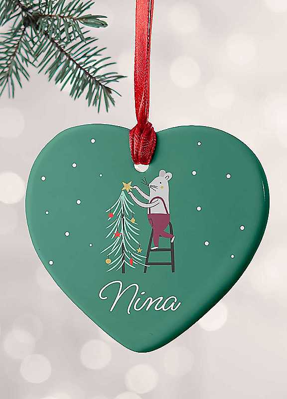Personalised Christmas Mouse Ceramic Decoration - Heart