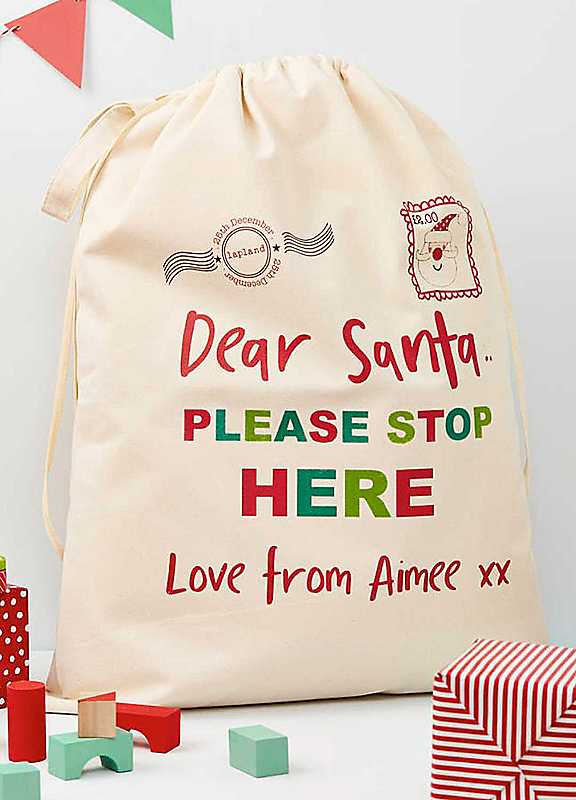 Just the right size for putting under the tree on Christmas Eve ready for Santa to arrive, our adorable Personalised Dear Santa Christmas Sack will make the ultimate festive stocking. A gorgeous Christmas decoration in its own right, this cotton Christmas sack will add to the magic of the occasion and help make your little one's Christmases that bit more special and memorable.Personalise with your choice of name and our amazing personalisation team will do the rest!Name: Up to 12 charactersDimensions approx. 60 x 45 cm | personalized christmas stocking, personalized christmas decoration, childrens christmas decoration, large christmas decor
