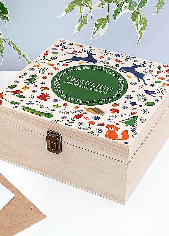 Children are always desperate to open 'just the one present' the night before Christmas over excited and full of Christmas joy they just can't wait till the morning to see what Father Christmas has left for them. Start a new tradition this year which will stop the nagging and keep little ones content and busy until it's time to go to sleep.This Christmas Eve box is perfect for a little girl or boy fill with tons of treats to see your little one's eyes light up. You are able to reuse this box every year to keep the magic alive!The festive box is printed with a beautiful traditional print design featuring fun woodland characters!The words 'Christmas Eve Box' come as standard text. Please be sure to add the name exactly as you would like it printed for example if the name is Thomas please write Thomas.Name: Up to 12 charactersDimensions approx. 24 x 24 x 11 cm