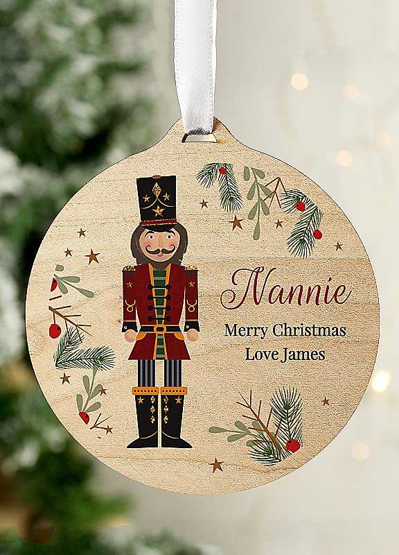 This personalised Christmas nutcracker wooden bauble will look great on any Christmas tree!You can personalise with a name of up to 12 characters and a special message over 2 lines of 20 characters. This round decoration is complete with ribbon included ready to hang on the tree.Brand: Personalised MomentoDimensions approx. 10.7H, 10W, 0.6D cm | personalized christmas ornaments, wooden christmas decorations, wooden christmas ornaments, round christmas ornaments, nutcracker christmas ornaments