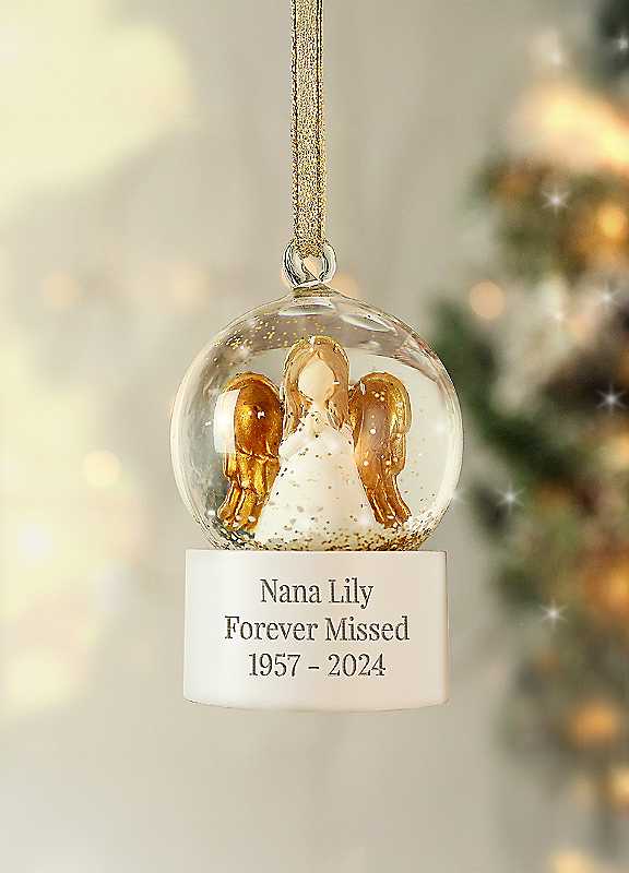 This adorable personalised angel snow globe is a lovely way to add a magical touch to the tree. Personalise this ornamental tree decoration snow globe with 3 lines of text up to 15 characters per line. All personalisation is case sensitive and will appear as entered.Brand: Personalised MomentoLine 1 - 15 CharacterLine 2 - 15 CharacterLine 3 - 15 CharacterComes supplied ready to hang!Glass