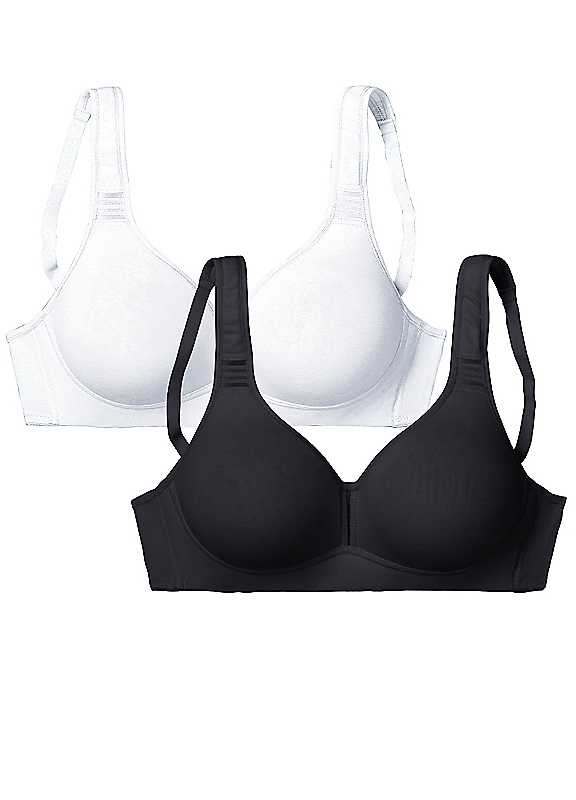 Adjustable straps and back fastening. Each pack comes with a white bra. Pack of 2 Hand wash 95% Cotton, 5% Elastane