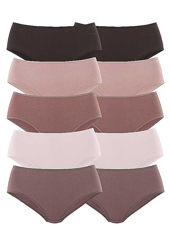 Practical pack of 10 high waist briefs come in a soft stretch cotton quality. Brand: Petite Fleur Pack of 10 Colour Mix 1: 2 x Dark Blue, 2 x Medium Blue, 2 x Pale Blue, 2 x Light Blue & 2 x White Colour Mix 2: 5 x Nude & 5 x Black Colour Mix 3: 2 x Dark Blue, 2 x Blue, 2 x Light Blue, 2 x Apricot & 2 x Light Apricot Colour Mix 4: 2 x Dark Brown, 2 x Dark Taupe, 2 x Taupe, 2 x Beige & 2 x Light Beige With elastic cuffs at waist and leg openings Extra high rise for extra comfort Made of soft stretch cotton material Washable 95% Cotton (supports Cotton made in Africa), 5% Elastane By purchasing these products you are supporting the sustainable farming of cotton as part of the 'Cotton Made in Africa' initiative and contributing towards the improvement of living conditions for cotton farmers in Africa.