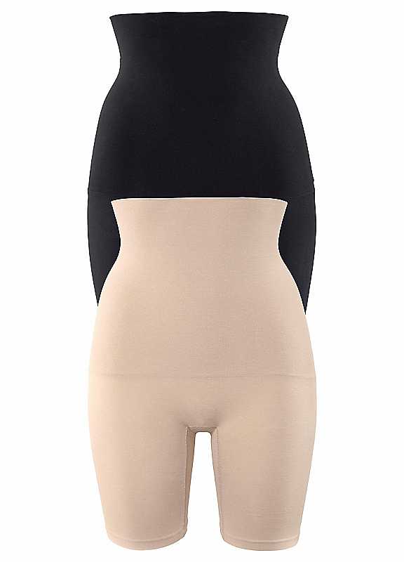 Pack of 2 seamless, long body forming pants, without any visible seams, and which perfectly conceal the tummy section. Brand: Petite Fleur Washable 65% Cotton, 20% Elastane, 15% Polyamide | seamless shapewear shorts, seamless body shapewear, beige shapewear, seamless tummy control shapewear, tummy thigh shaper