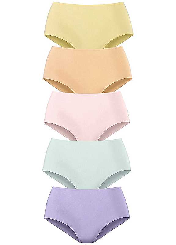 Practical pack of 5 high waist briefs, comfortable to wear and made from soft stretch cotton quality. Brand: Petite Fleur Washable 95% Cotton (Cotton made in Africa), 5% Elastane By purchasing these products you are supporting the sustainable farming of cotton as part of the 'Cotton Made in Africa' initiative and contributing towards the improvement of living conditions for cotton farmers in Africa. | breathable cotton underwear, sustainable cotton underwear, light colour panties, plus size cotton briefs, high waisted cotton briefs, soft cotton underwear, cotton full briefs