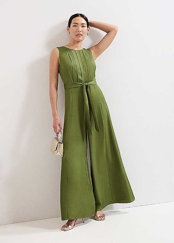 A Phase Eight favourite, our bestselling wide leg jumpsuit has arrived in a brand new colour. Made in a gorgeous green shade, this jumpsuit features refined pleats on the bodice, a matching tie belt and a modern wide leg silhouette. Style with your favourite heels and clutch for the ultimate event look.Machine washable67% Polyester (Recycled), 33% Polyester