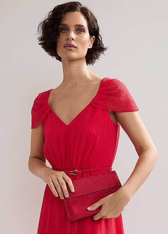 Phase Eight Suede Clutch Bag - Coral - Size ONE SIZE