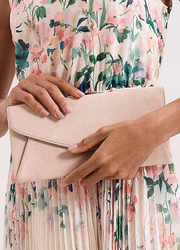 A neutral 'wear-with-everything' clutch bag will stand the test of time in your wardrobe. Made from 100% suede, this versatile clutch bag closes with a practical popper fastening and gives you countless styling possibilities, designed to wear season after season.Do not wash100% Suede
