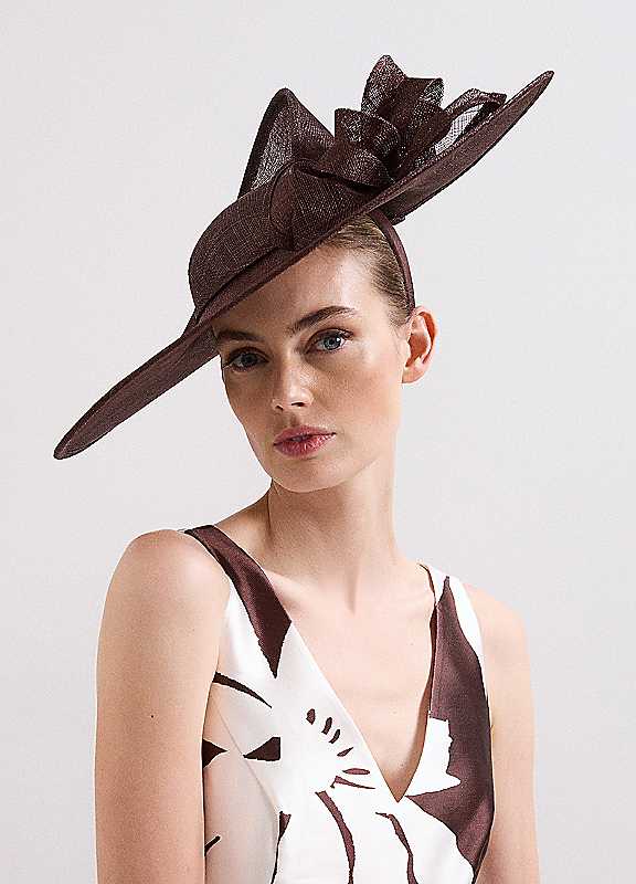 Finish your wedding or race day look with this large brown fascinator. Designed with an asymmetric brim that twists elegantly around for a touch of interest, this fascinator is finished with a feminine bow detail and set on a comfortable headband. This fascinator is perfect for adding a touch of statement to your event outfits.Do not wash100% Abaca