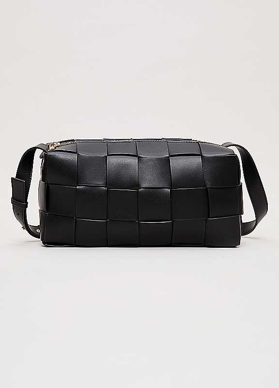 A black bag is a must-have staple in any wardrobe. Updated with a modern woven design ours features a crossbody strap that makes it practical for everyday wear. The boxy shape gives you plenty of room to accommodate your essentials.Do not wash70% Polyester (Recycled Fibres), 30% Polyester