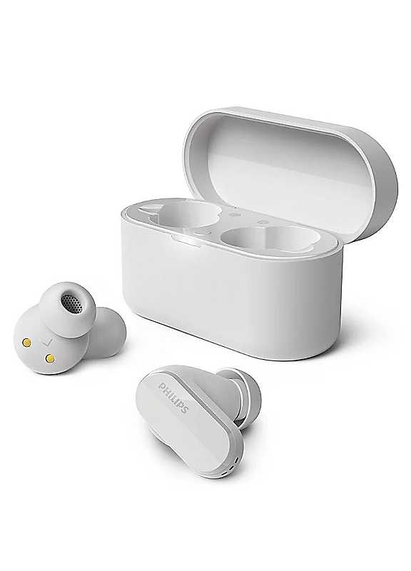 From music to calls, these true wireless noise-cancelling earbuds offer great sound and reduce wind noise. Immerse in tunes and enjoy clear calls on the go. The charging case fits in your pocket for all-day readiness. Noise cancelling quietens external noise, including wind, with auto or adjustable settings via the Philips headphones app. Activate awareness mode with a tap to hear surroundings. A dedicated mic and ai aLGorithm ensure clear calls by removing background noise. Next-generation bluetooth with le audio and lc3 codec provides a steady connection and better sound, with minimal lag for movies or gaming. Enjoy warm, natural sound with 10 mm drivers tuned to the Philips sound signature. The pocket-sized charging case offers mono mode, allowing use of one earbud while the other charges. Touch controls and multipoint connection simplify use, connecting to two bluetooth devices simultaneously. IPX4 rating ensures splash and sweat resistance. Enjoy up to 21 hours of playtime with the case, with quick charging options. The Philips headphones app allows customization of noise cancelling and sound settings. Soft, interchangeable silicone ear-tip covers provide a secure, comfortable fit, diminishing external noise. | noise cancelling headphones, sound cancelling earbuds, noise cancelling bluetooth, noise reduction earbuds, noise cancelling earphones