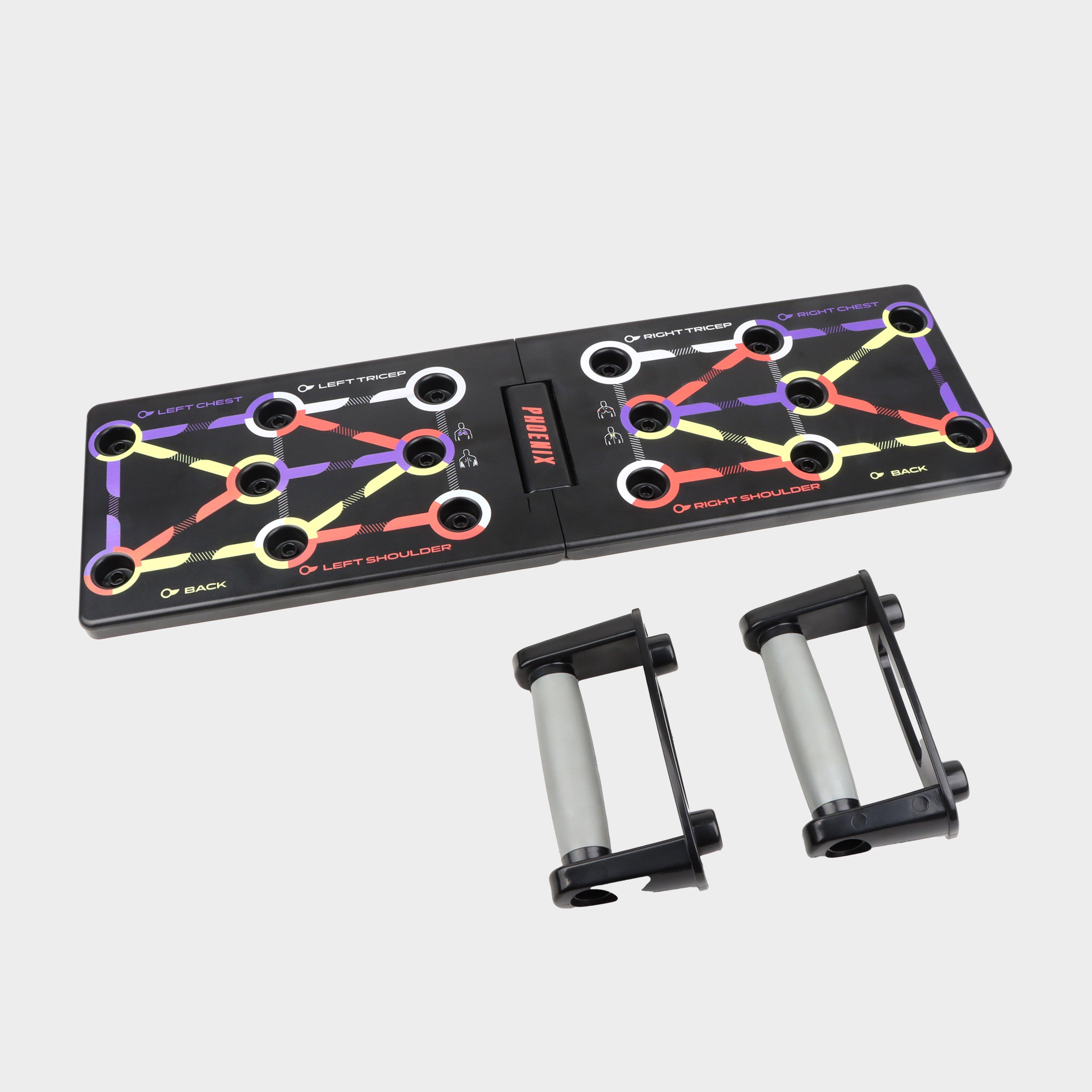 Enhance your upper body strength with the Phoenix Fitness Foldable Pushup Board. Designed for versatile workouts, it offers color-coded positions to target different muscle groups effectively. Its foldable design makes it easy to store and perfect for home or travel fitness routines. Build strength, improve posture, and stay active with this convenient training tool.__Bullet Points:>Color-coded positions for targeted muscle workoutsFoldable design for easy storage and portabilityDurable and high-quality constructionHelps improve strength, endurance, and postureNon-slip base for added safety and stabilitySuitable for all fitness levelsLightweight and easy to transportPerfect for home, gym, or travel workouts