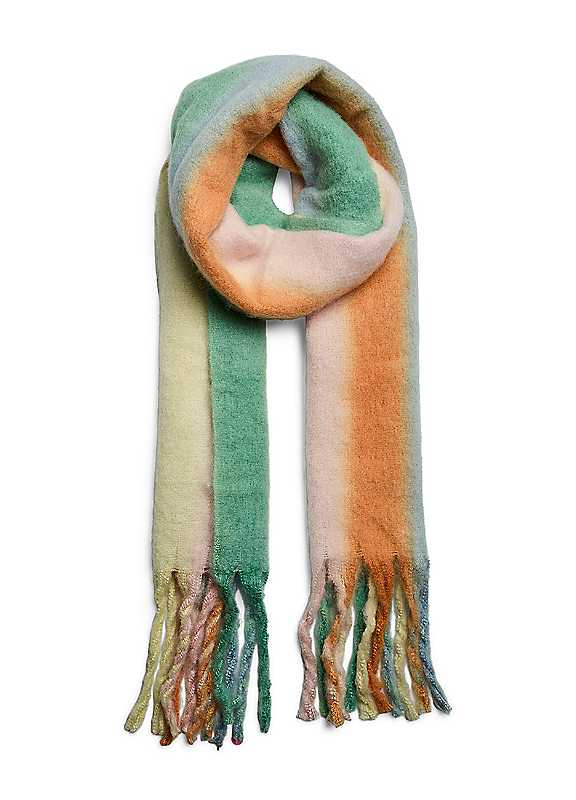 Pieces Multi Stripe Scarf - Green Stripe - Size ONE SIZE